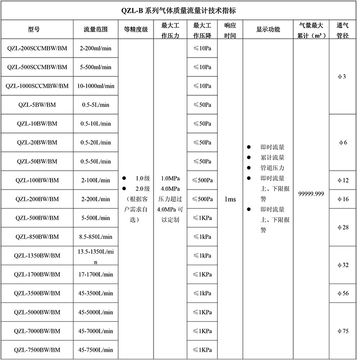 QZL 係列氣體質量流量計適用於對氣體質量進行精密測量。它將測量的氣體質量流量轉換為相應的標準狀態下的氣體體積流量或標準狀態下的氣體質量流量。