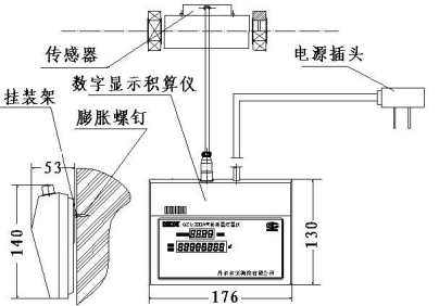 6 .3 氣流質量傳感器和數字顯示積算儀連接安裝示意圖